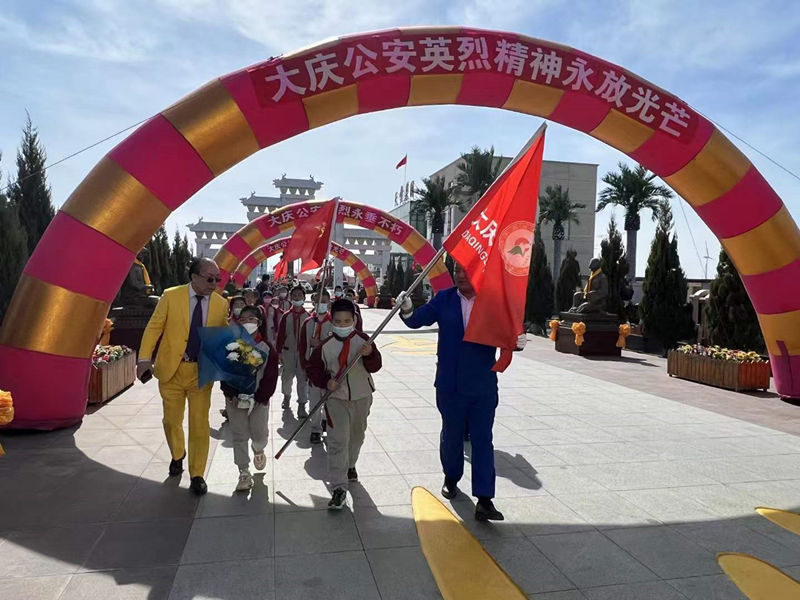 讓北二小手持鮮花來(lái)到大慶公安英烈園給公安英烈掃墓